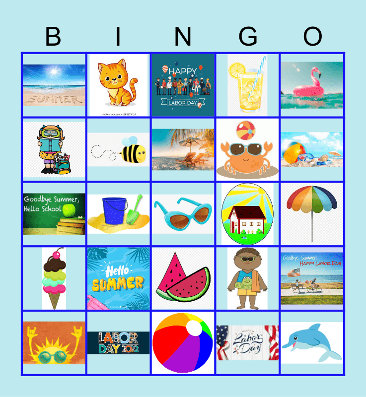 This bingo card has 37 images and 2 words: Is summer over yet? and Adios Summer.