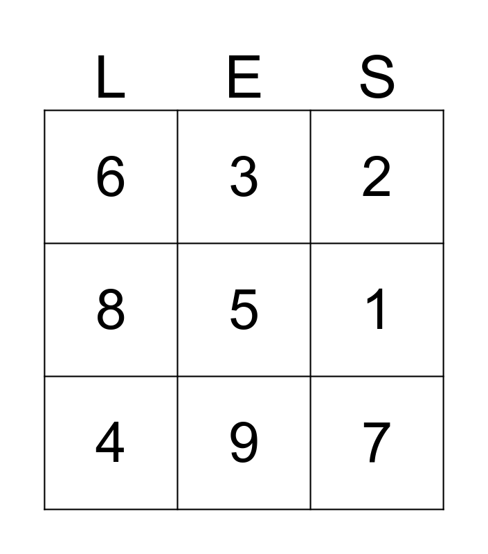 This bingo card has a free space and 8 words: 1, 2, 3, 4, 6, 7, 8 and 9.