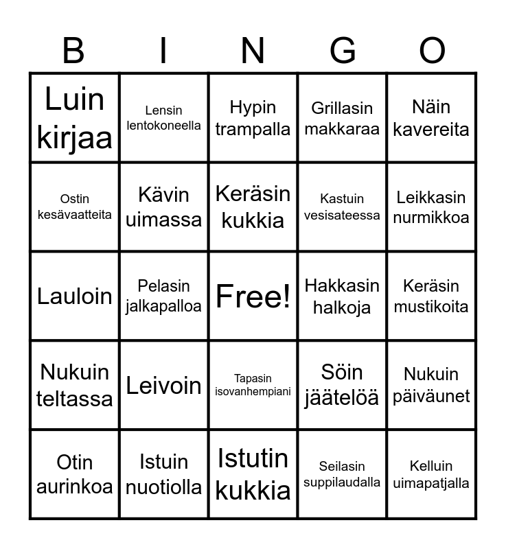 Kesäloma | KESÄBINGO | Kesälomabingo | Kesälomabingo | Kesälomabingo