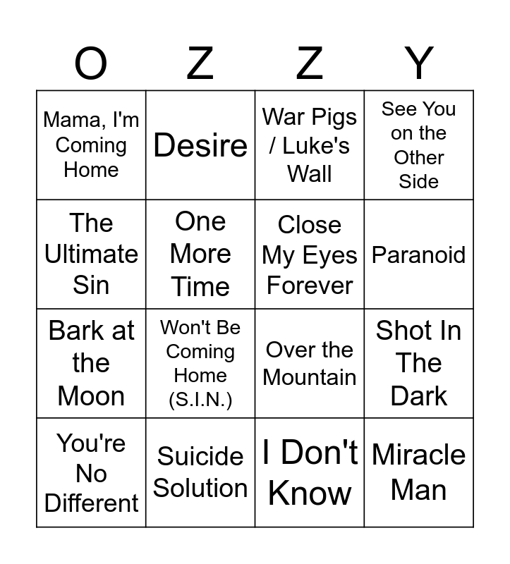 MUSIC BINGO at the Ann Arbor Eagles! Ozzy, with Love. | OSBOURNE | OZZY TRIBUTE | Ozzy Osbourne | Karaoke Hits #1 Bingo