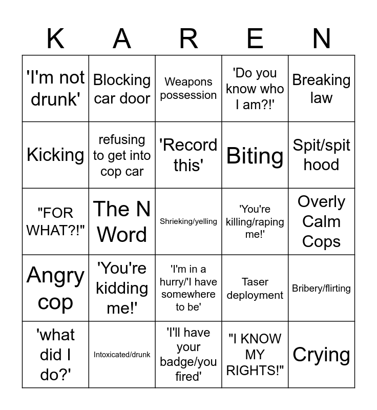 Karen Bingo | Karen Bingo | Cop Bodycam Bingo | Cop Bodycam Bingo | Cop Bodycam Bingo