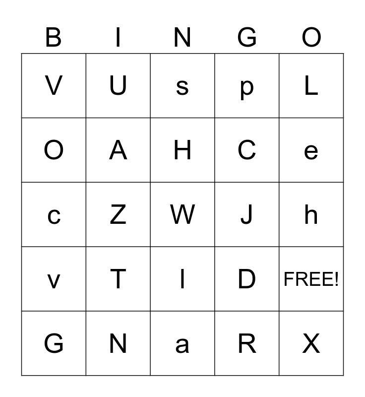 uppercase and lowercase letters | uppercase and lowercase letters | uppercase | Ps Cl Gr Ly Ra Vd | ALPHABET BINGO
