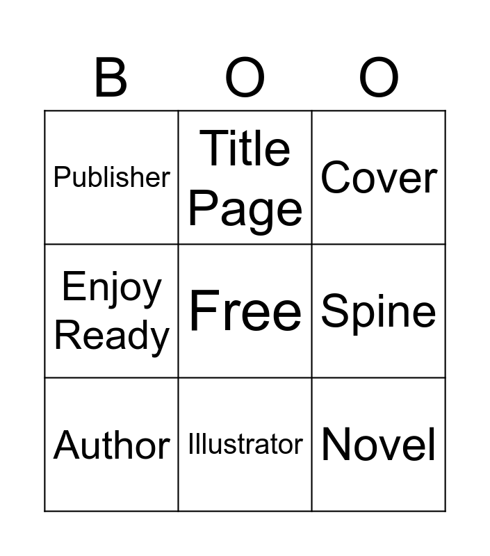 This bingo card has a free space and 27 words: Character, Setting, Mystery, Fantasy, Spine, Cover, Title Page, Plot, Theme, Call Number, Non- Fiction, Enjoy Ready, Historical Fiction, Humor, Fiction, Informa- tional Text, Author, Illustrator, Copyright, Publisher, Adventure, Paperback, Hardback, Picture Book, Chapter Book, Novel and Science Fiction.
