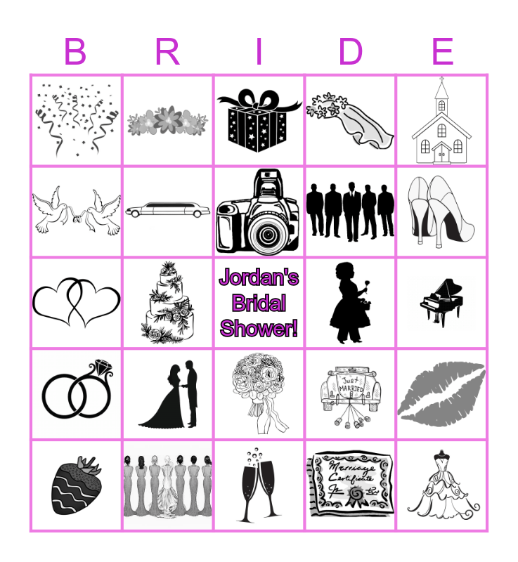 Jordan's Bridal Shower Bingo Card