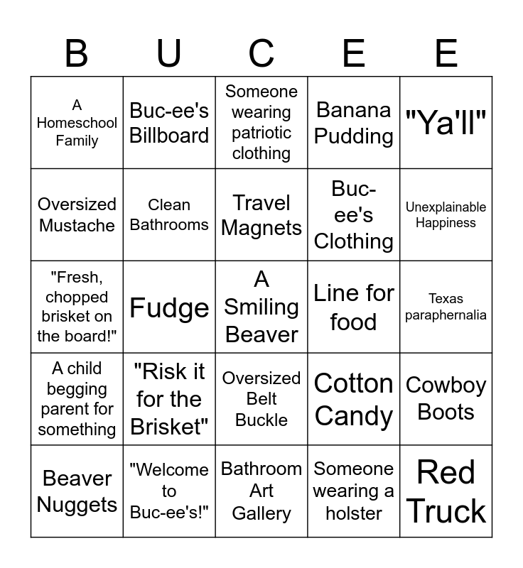 Buc-ee's Bingo | BUCEE'S BINGO | Buc-ee's Bingo | BUCEE'S BINGO | BUCEE'S BINGO