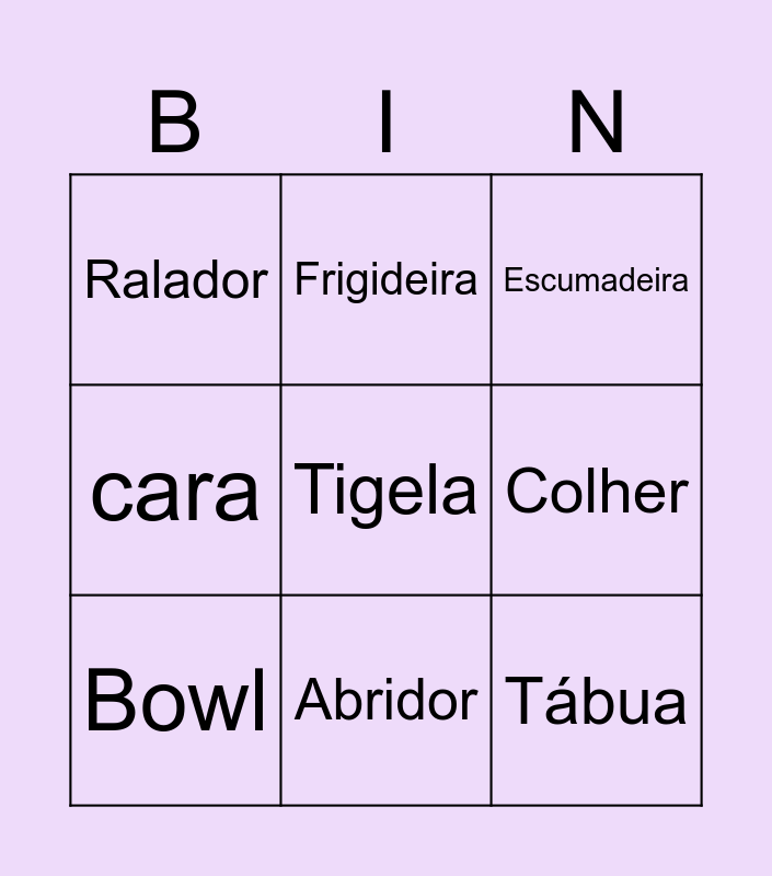 This bingo card has 72 words: Free!, Frigideira, Colher, Panela, Garfo, Faca, cara, Copo, Tábua, Caneca, Concha, Espátula, Peneira, Ralador, Leiteira, Jarra, Forma, Tigela, Pegador, Escorredor, Abridor, Escumadeira, Saleiro, Espremedor, Moedor, Açucareiro, Mixer, Liquidificador, Tampa, Bule, Descascador, Bowl, Porta-talheres, Saca-rolhas, Luva térmica, Coador, Panela, Frigideira, Colher, Garfo, Faca, Prato, Copo, Xícara, Caneca, Tábua, Espátula, Concha, Ralador, Peneira, Jarra, Leiteira, Tigela, Forma, Escorredor, Pegador, Escumadeira, Abridor, Espremedor, Saleiro, Açucareiro, Moedor, Liquidificador, Mixer, Bule, Tampa, Bowl, Descascador, Saca-rolhas, Porta-talheres, Coador and Luva térmica.