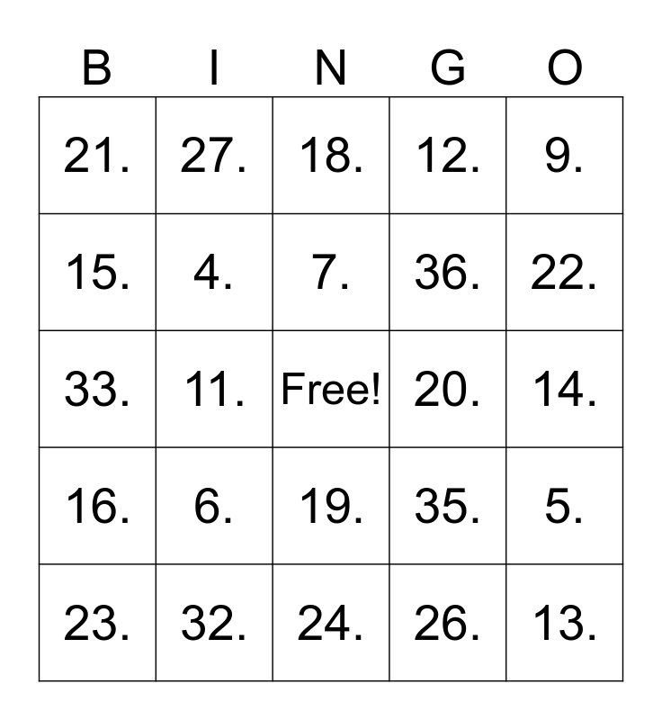 This bingo card has a free space and 37 words: 1., 2., 3., 4., 5., 6., 7., 8., 9., 10., 11., 12., 13., 14., 15., 16., 17., 18., 19., 20., 21., 22., 23., 24., 25., 26., 27., 28., 29., 30., 31., 32., 33., 34., 35., 36. and 37..