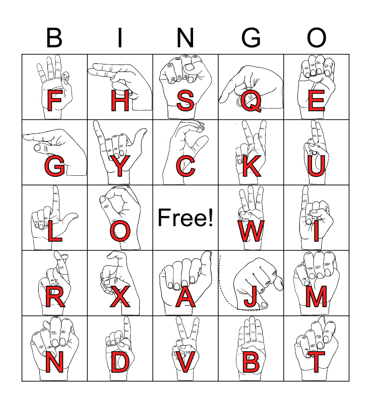 This bingo card has 26 images, a free space and 26 words: A, B, C, D, E, F, G, H, I, J, K, L, M, N, O, P, Q, R, S, T, U, V, W, X, Y and Z.