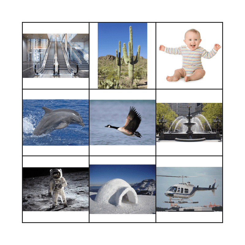 This bingo card has 9 images.