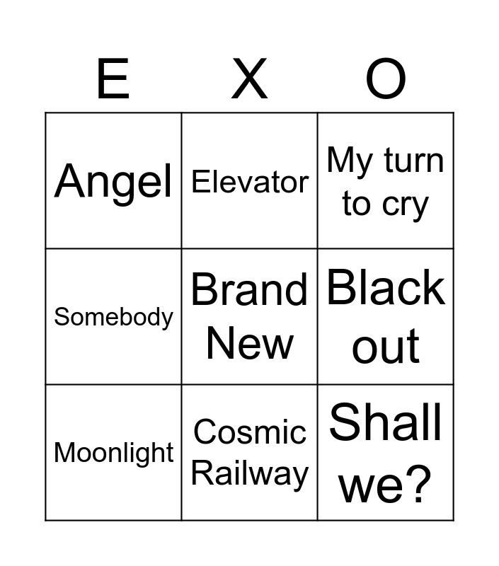 This bingo card has 30 words: Free!, Transformer, Fall, Let out the beast, Angel, My turn to cry, Moonlight, Girl x Friend, White noise, Falling for you, Walk on memories, Gravity, Groove, Paradise, Love fool, Cherish, Vroom vroom, Rodeo Station, Telephone, Brand New, Grey Suit, Lit, Elevator, Shall we?, Black out, Somebody, Peaches, On me, Cosmic Railway and For you.
