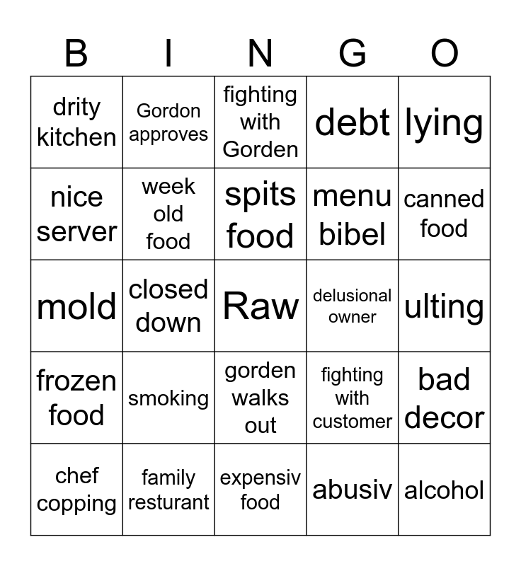 Kitchen Nightmares Bingo | gordon bingo | Kitchen nightmares | Kitchen Nightmares BINGO | Kitchen Nightmares BINGO
