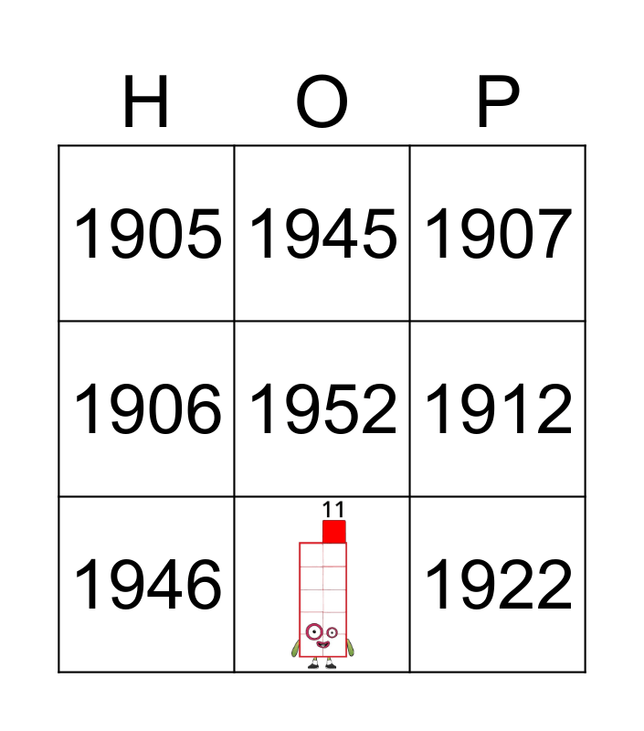 This bingo card has 30 images and 60 words: 1901, 1902, 1903, 1904, 1905, 1906, 1907, 1908, 1909, 1910, 1911, 1912, 1913, 1914, 1915, 1916, 1917, 1918, 1919, 1920, 1921, 1922, 1923, 1924, 1925, 1926, 1927, 1928, 1929, 1930, 1931, 1932, 1933, 1934, 1935, 1936, 1937, 1938, 1939, 1940, 1941, 1942, 1943, 1944, 1945, 1946, 1947, 1948, 1949, 1950, 1951, 1952, 1953, 1954, 1955, 1956, 1957, 1958, 1959 and 1960.