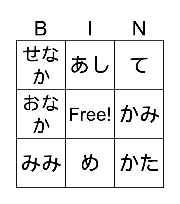 Parts of Body | BINGO | どんなどうぶつ | 設計センターでBINGO!!(敬称略) | Hiragana