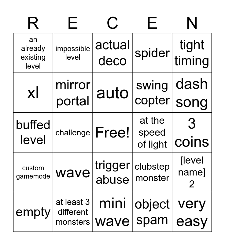 recent tab | recent tab bingo | Geometry dash bingo | GD Recent tab bingo | GD Recent tab bingo