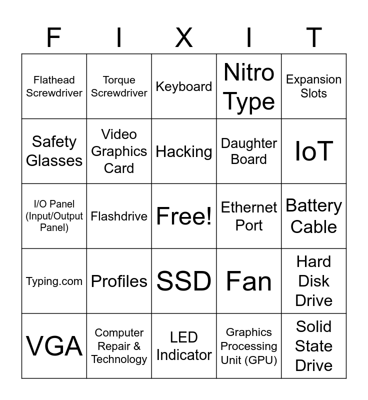 FixIT Bingo | CRT FixIT Bingo | Computer FIXIT Bingo | Computer Hardware | PC Part Bingo