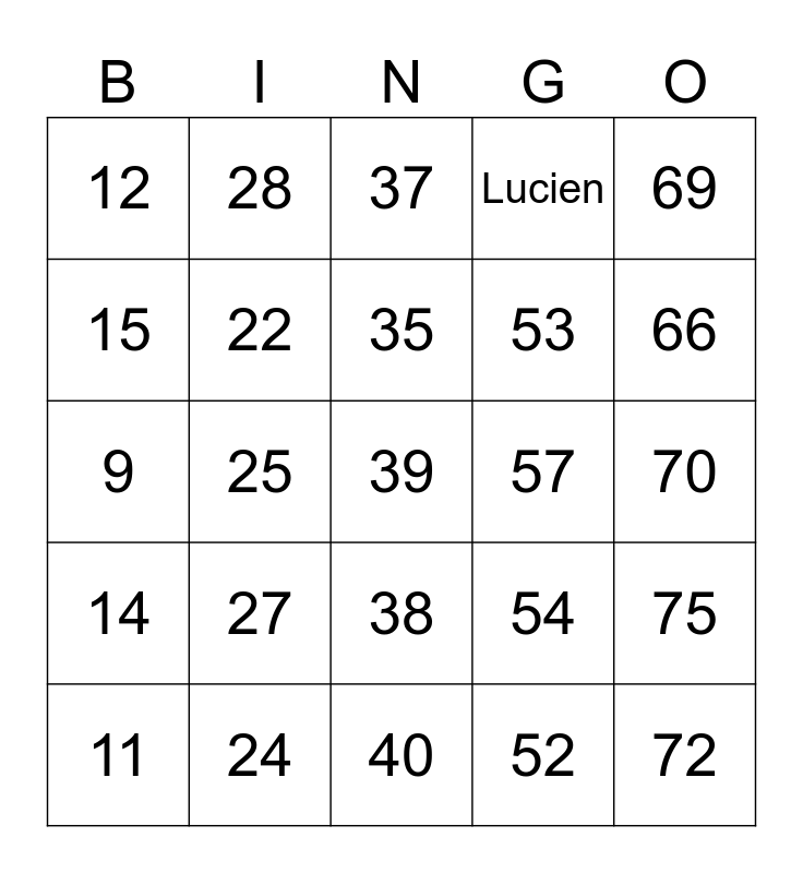 This bingo card has 55 words: Dacoma, Devol, Foss, Lucien, 6, 21, 35, 51, 66, 7, 22, 36, 52, 67, 8, 23, 37, 53, 68, 9, 24, 38, 54, 69, 10, 25, 39, 55, 70, 11, 26, 40, 56, 71, 12, 27, 41, 57, 72, 13, 28, 42, 58, 73, 14, 29, 43, 59, 74, 15, 30, 44, 60, 75 and 45.