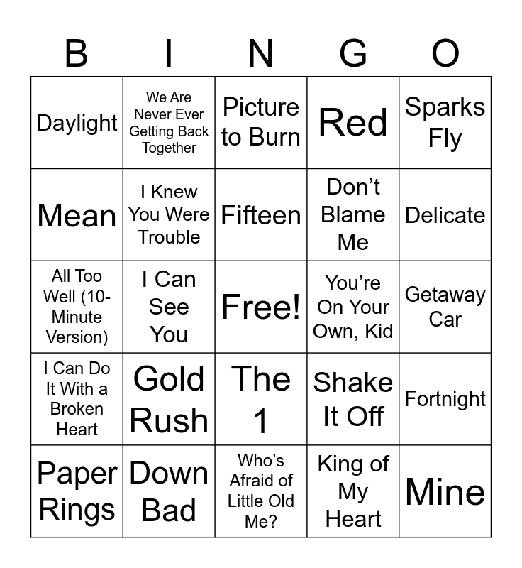 TAYLOR SWIFT SONGS | taylor swift bingo | taylor swift bingo | Taylor Swift | Taylor Swift