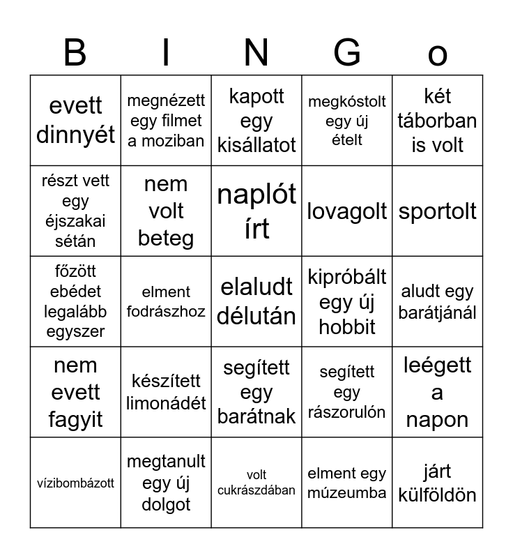 Nyári élmények | Találj valakit, aki a nyáron... | Keress valakit, aki a nyáron ... | Cserkész Ismerkedő Bingo | Évkezdő BINGO
