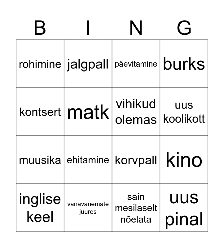 ⚠ This card has duplicate items: kino (2), teater (2), raamat (2), muusika (2)