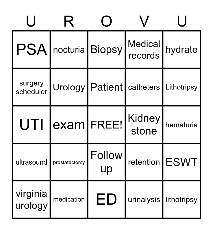 Urology Bingo | Urology Bingo | Urology Bingo | MOD 5 TERMS BUILT | Urology Bingo