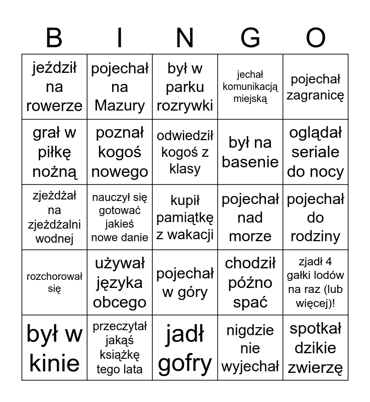 Znajdź kogoś kto... (wakacje) | Lektury do matury | Znajdź kogoś kto w wakacje... | Znajdź kogoś kto w wakacje... | TAK