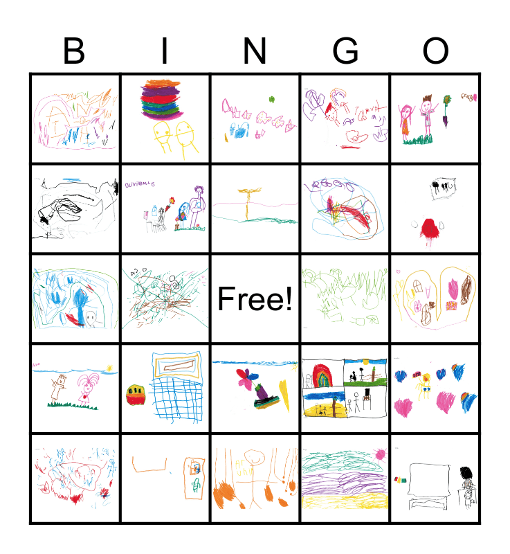 This bingo card has 24 images and a free space.