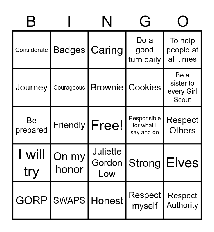 Brownie Troop 1803 Girl Scout BINGO | Girl Scout Oath and Law | Juliette Gordon Low | GIRL SCOUT BINGO | Juliette Gordon Low