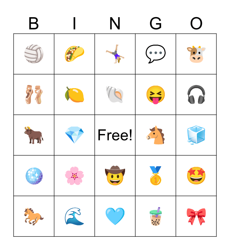 This bingo card has a free space and 24 words: đ¸, đ, đ, đ, đŽ, đ, đа, đŽ, đ´, đ¤ , đ, đ, đĨ, đ¤Š, đ, đ§, đ§, đ¤¸đŧââī¸, đ§, đ, đ, đĒŠ, đŦ and đŠĩ.