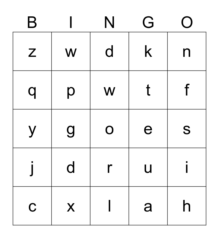 This bingo card has a free space and 24 words: d, x, w, c, n, z, q, w, e, r, t, y, u, i, p, a, s, d, f, g, h, j, k and l.