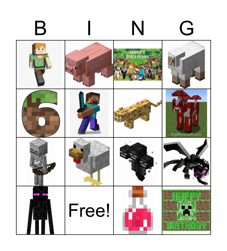 Minecraft Birthday BINGO | Gus's 6th Birthday BINGO | Gus's 6th Birthday BINGO | Minecraft Birthday BINGO | Pepíčkovo BINGO