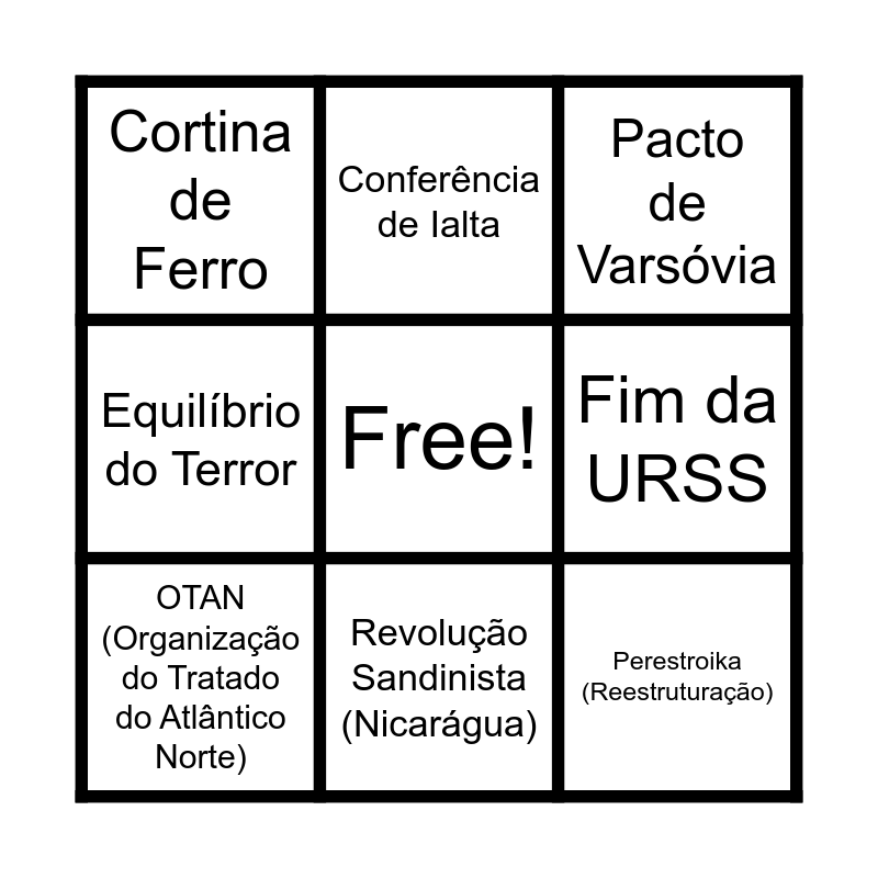 BINGO DA GUERRA DA FRIA | BINGO DA GUERRA DA FRIA | GUERRA FRIA | GUERRA FRIA | imperialismo
