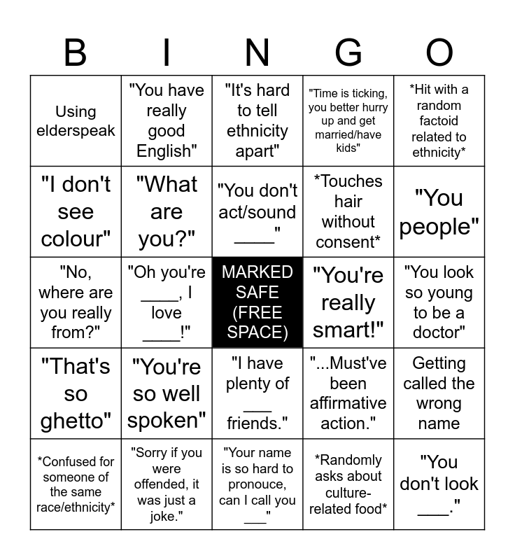 Microaggression | Microaggression Bingo | Microaggression Bingo | Microaggression Bingo | Words of Affirmation