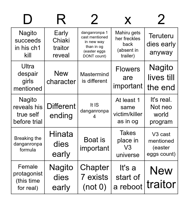 DANGANRONPA 2x2 PREDICTIONS | Danganronpa 2x2 | Danganronpa 2x2 Predictions | Danganronpa 2x2 | DR2x2 alternate scenario bingo