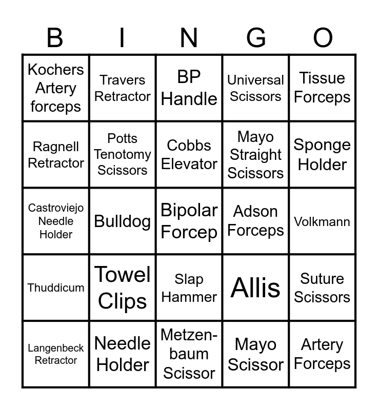 Surgical Instruments | Surgical Instruments | Instrument Bingo | Instrument BINGO | Surgical Instrument Bingo