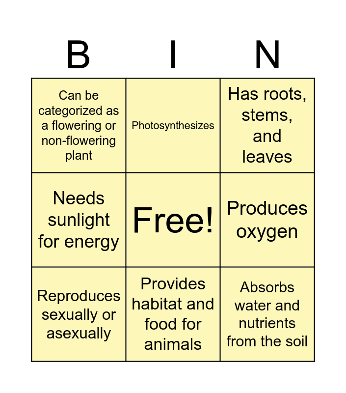 Characteristics of Plants | Plant Characteristic Bingo | Plant Characteristic Bingo | Plant Characteristic Bingo | Classification of Plants