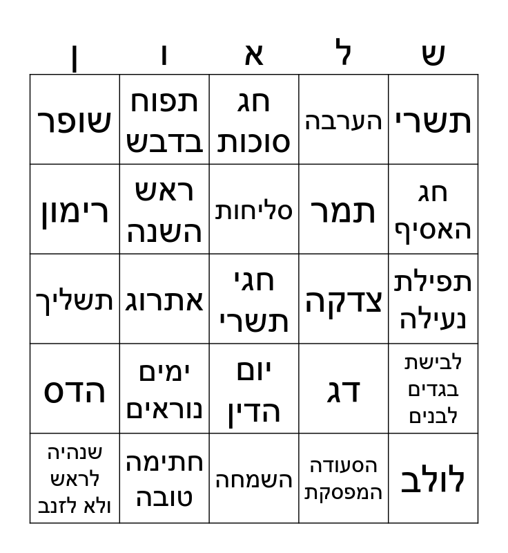 בינגו חגי תשרי | בינגו חגי תשרי | בינגו חגי תשרי | בינגו סוכות | Sukkot Bingo