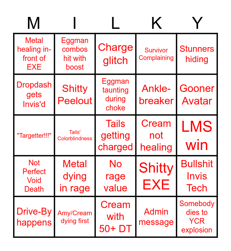 Evil Milk Drinking Bingo | Outcome Memories Bingo | Outcome Memories Bingo | Sonic Disasters Bingo | Sonic.exe Outcome Memories Bingo