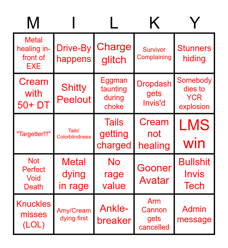 Evil Milk Drinking Bingo | Outcome Memories Bingo | Outcome Memories Bingo | Sonic Disasters Bingo | Sonic.exe Outcome Memories Bingo