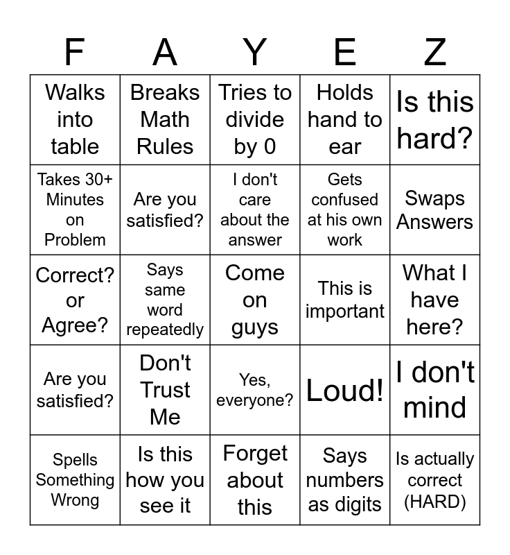 Fayez Bingo | Accountable Talk for LA Class Discussion | Empathy Bingo | BP Bingo | Matlock-isms