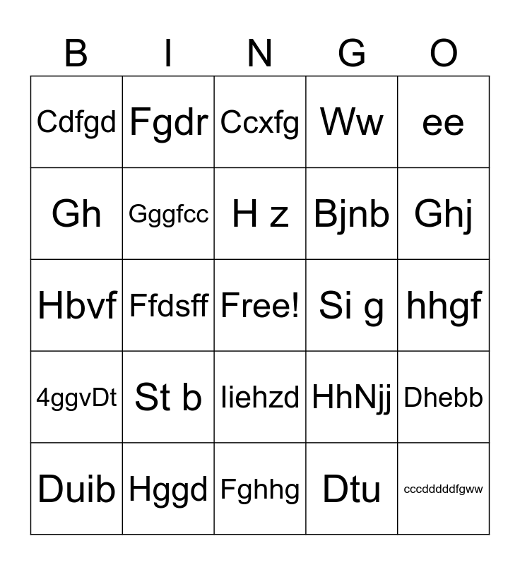 This bingo card has a free space and 24 words: St b, Hggd, H z, Duib, ee, Cdfgd, Gh, Fgdr, Si g, Iiehzd, Bjnb, Hbvf, HhNjj, Dhebb, Gggfcc, Dtu, hhgf, Ccxfg, Ghj, Ffdsff, cccdddddfgww, 4ggvDt, Ww and Fghhg.