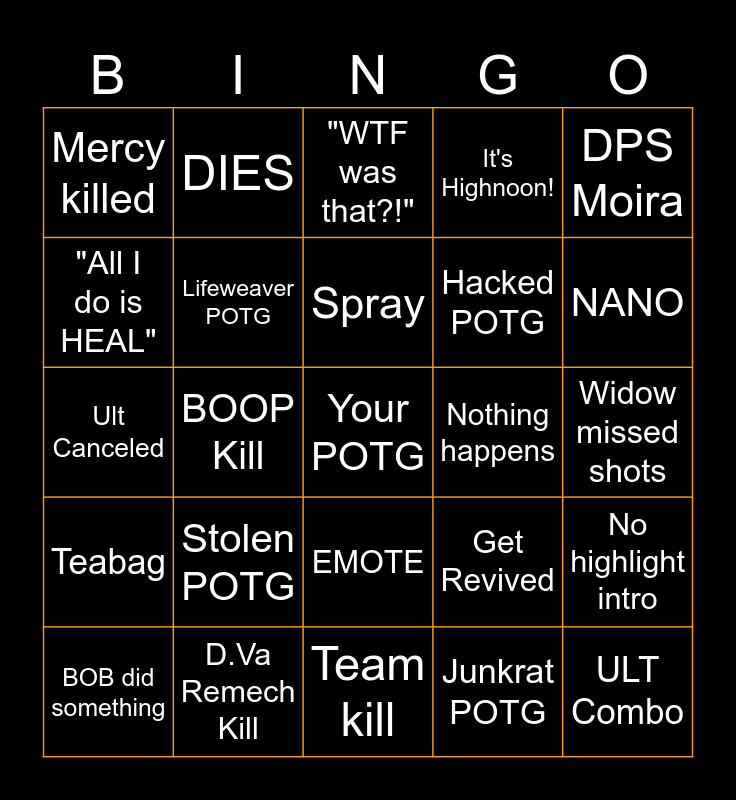 Overwatch Bingo! | POTG Bingo | POTG Bingo | POTG Bingo | POTG Bingo