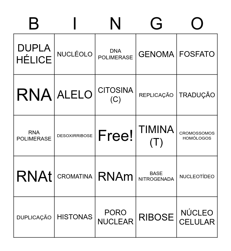 BINGO CROMOSSOMOS | DNA | DNA e RNA | BINGO DE GENÉTICA | BINGO DE GENÉTICA
