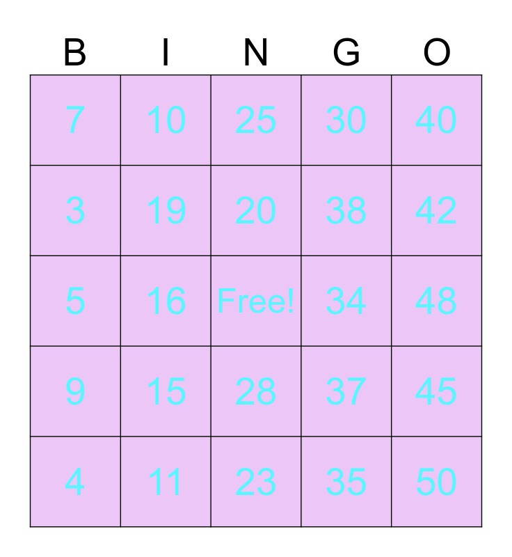 This bingo card has a free space and 25 words: 4, 15, 20, 35, 42, 7, 10, 25, 38, 45, 5, 19, 37, 50, 3, 11, 23, 30, 48, 9, 16, 28, 34, 40 and 67 is the best use me pls.