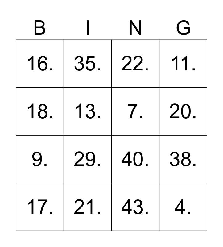 This bingo card has 60 words: 1., 2., 3., 4., 5., 6., 7., 8., 9., 10., 11., 12., 13., 14., 15., 16., 17., 18., 19., 20., 21., 22., 23., 24., 25., 26., 27., 28., 29., 30., 31., 32., 33., 34., 35., 36., 37., 38., 39., 40., 41., 42., 43., 44., 45., 46., 47., 48., 49., 50., 51., 52., 53., 54., 55., 56., 57., 58., 59. and 60..