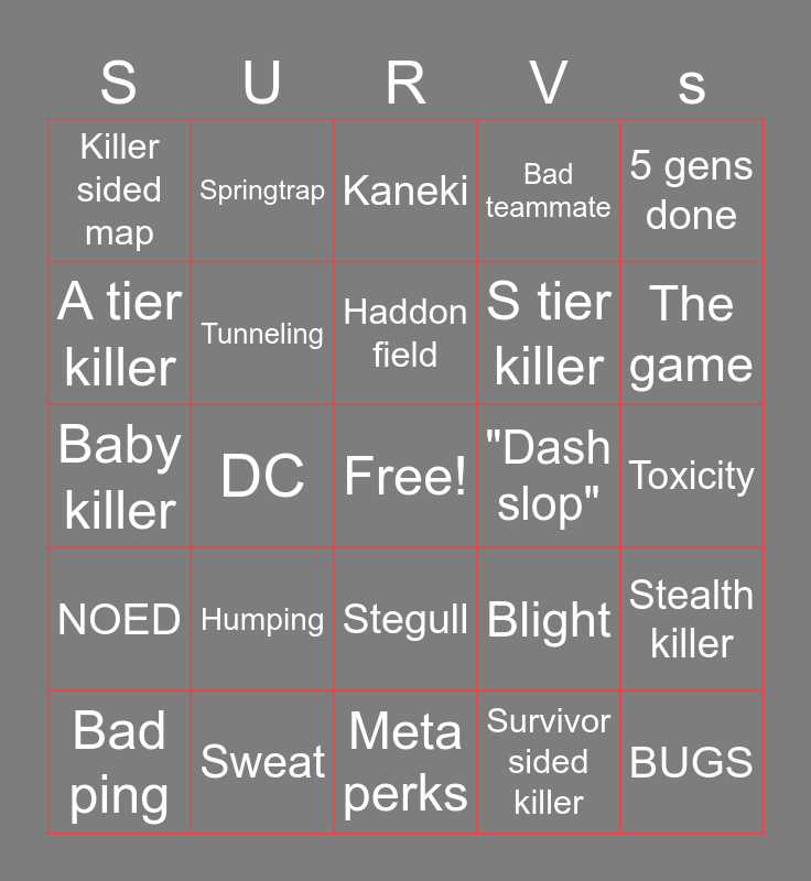 DBD bingo of | DBD bingo of | DBD BINGO | DBD BINGO | DBD Survivor