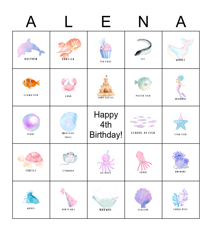 Mermaid Bingo Card