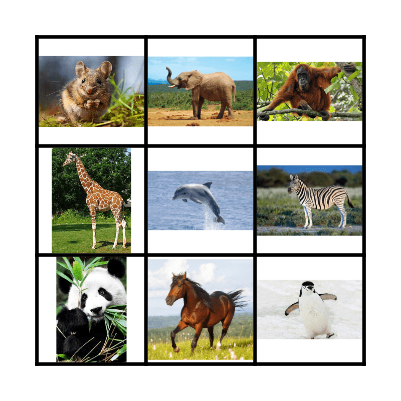 Animal BINGO Card