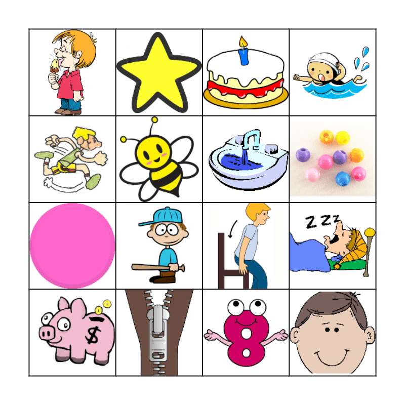 This bingo card has 15 images and a free space.