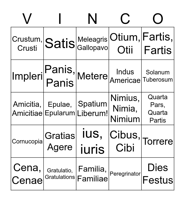 Dies Gratiae | Thanksgiving Bingo | Thanksgiving Bingo | VINCO! (Latin Food Bingo) | Latin Vocabulary Wk 5