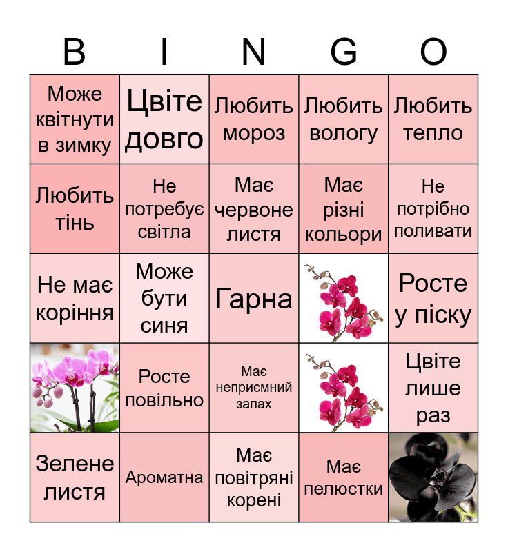 Орхідея | Бінго Знайомство | Бінго Знайомство | Бінго Знайомство | YOUTH HUMAN BINGO